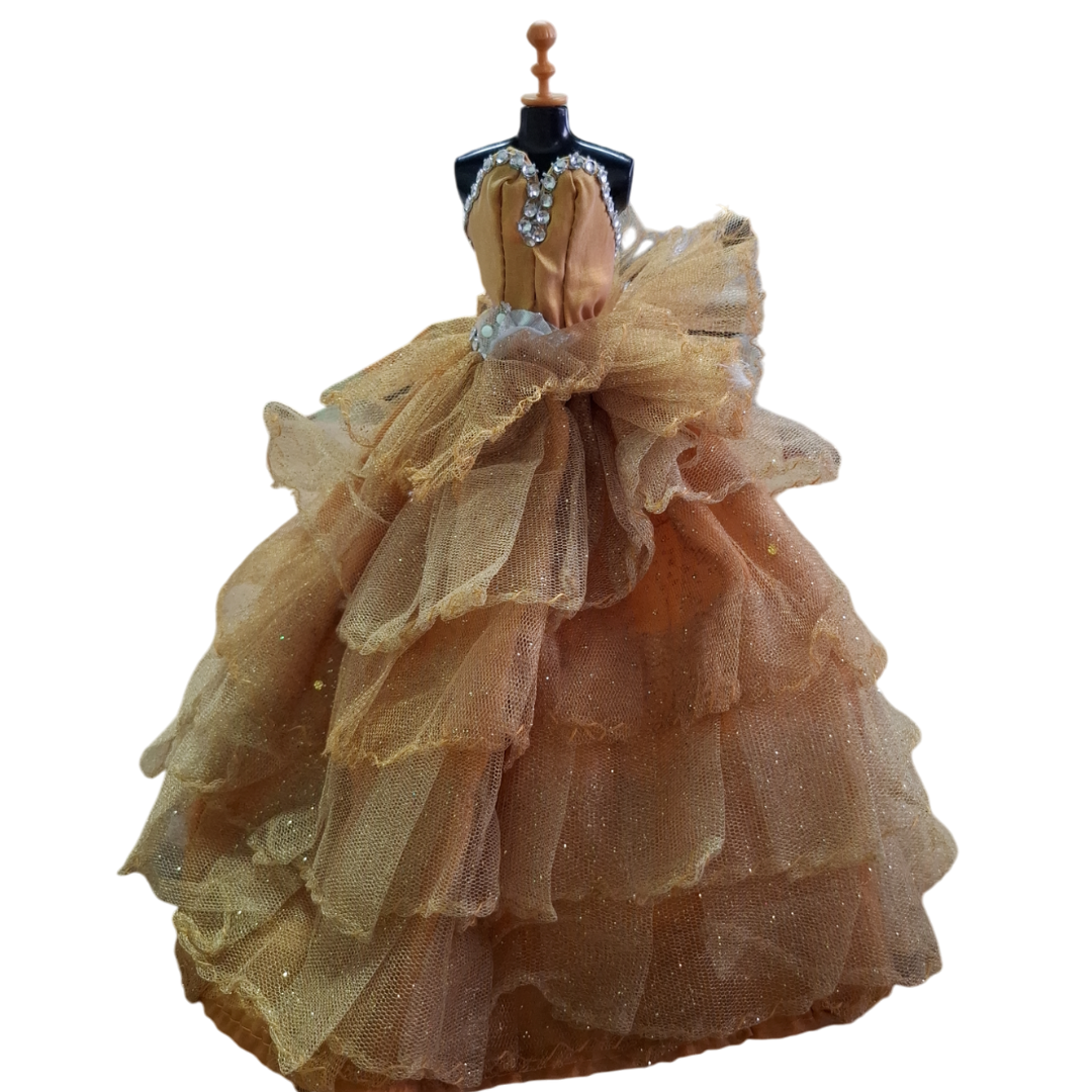 Color negro y dorado. Mide aproximadamente 27 cm.