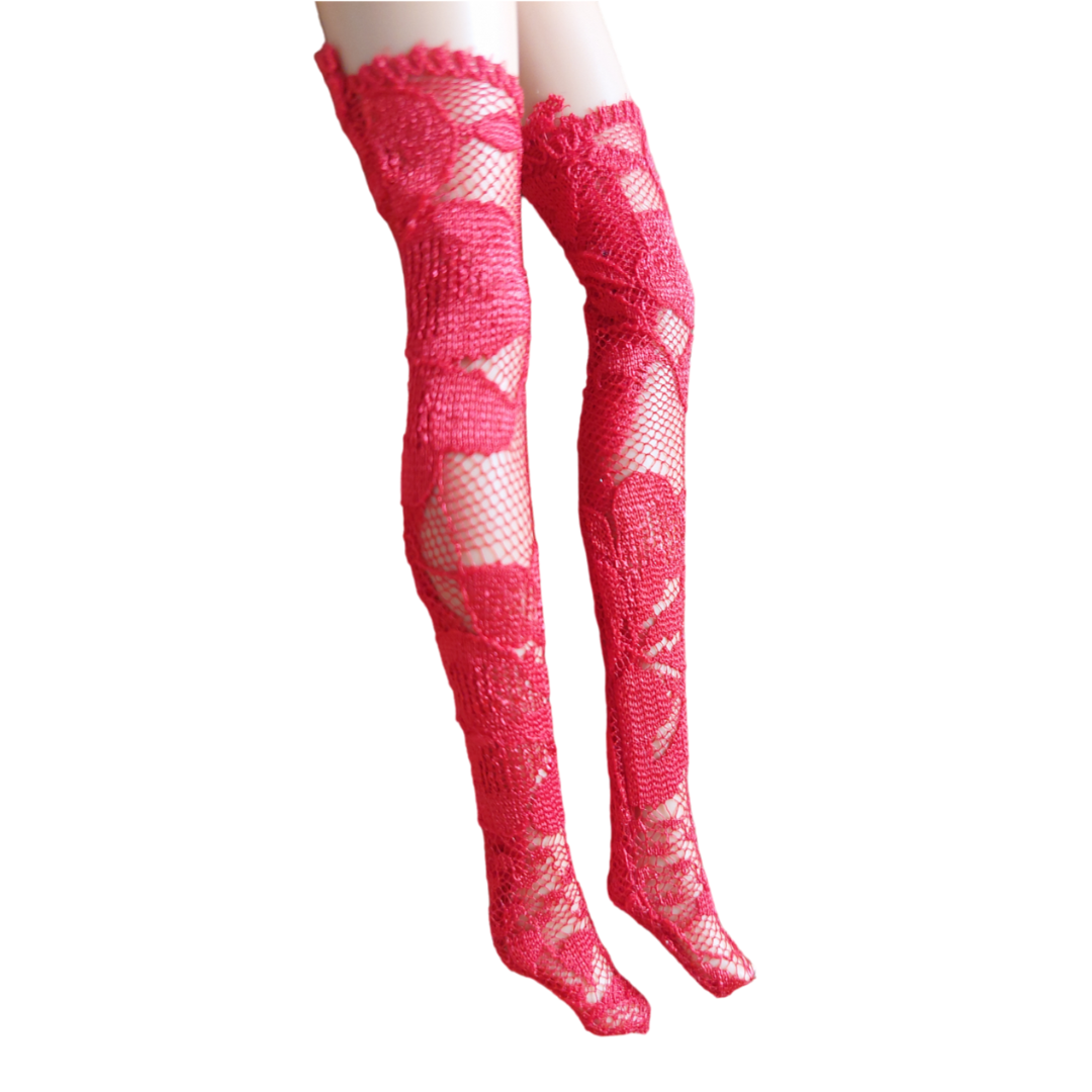 1 par de medias de encaje color rojas.