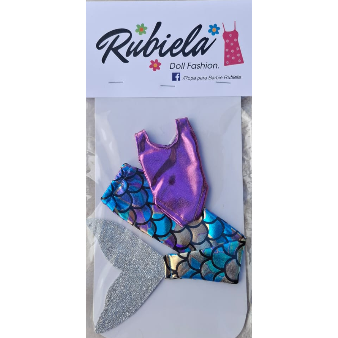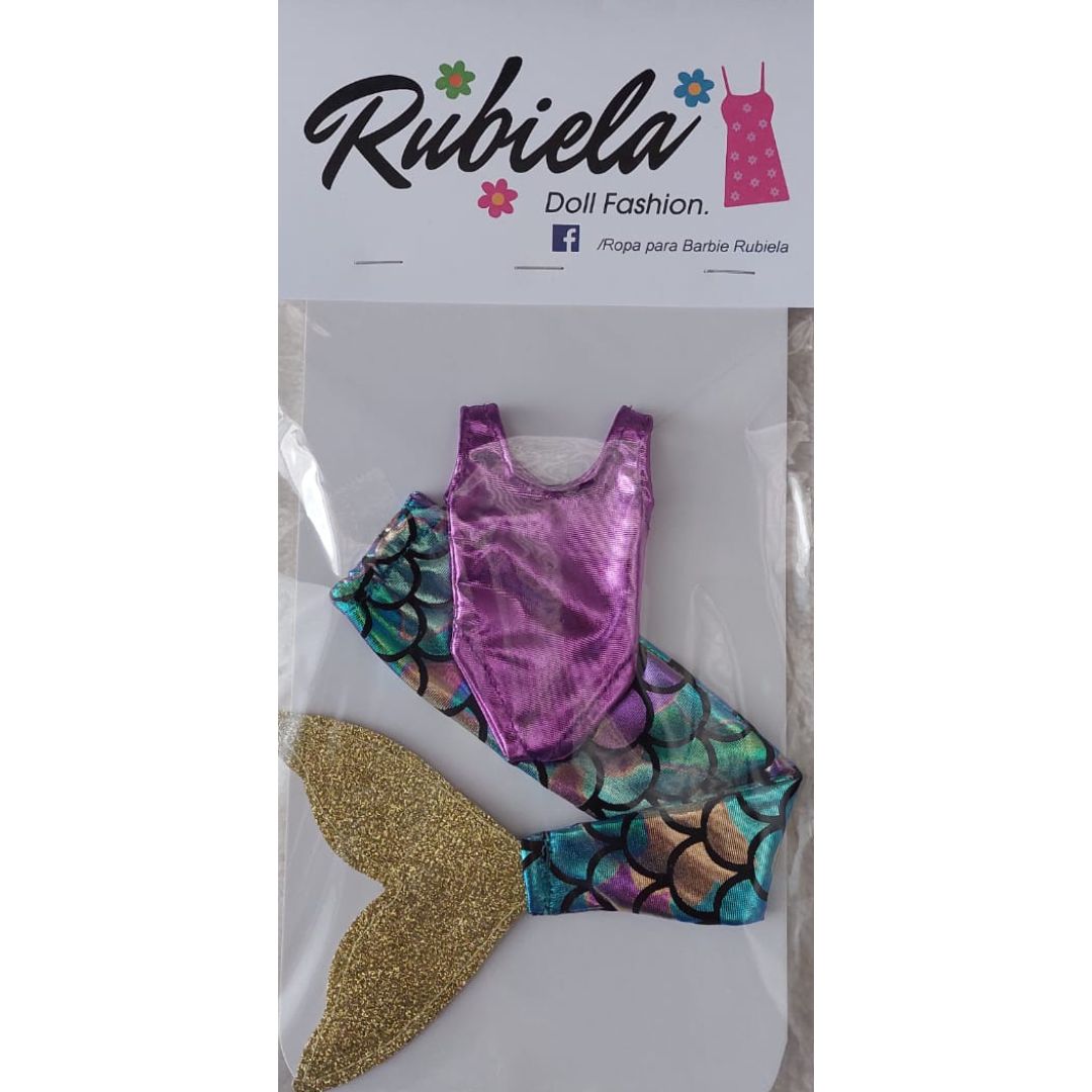 Cola de sirena de escamas pastel y calzoneta metálica color rosado.